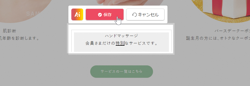 ホームページ内の文字や画像をダイレクトに編集します。